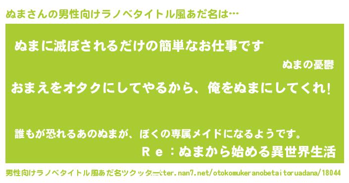| 女子向けラノベタイトル風あだ名 | 『ぬま夫妻のなれそめ』『闇のぬま』 |