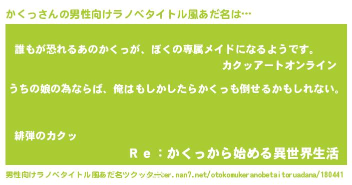 | 胡散臭い通販商品みたいなあだ名 | 『運命の人と巡り会える高級そうな絵画…その名も「かくっ」』 |