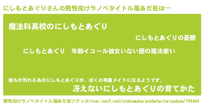 にしもとあぐりさんの男性向けラノベタイトル風あだ名をツクッター!