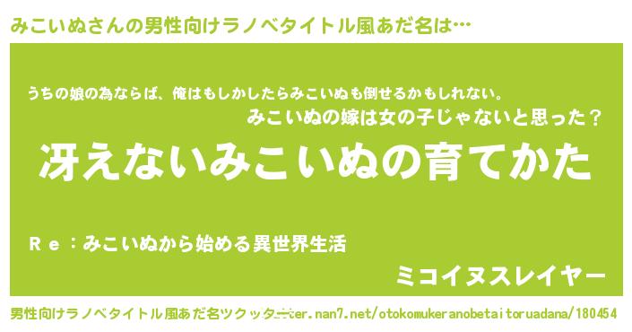 | 女子向けラノベタイトル風あだ名 | 『男装みこいぬの憂鬱な任務』 |