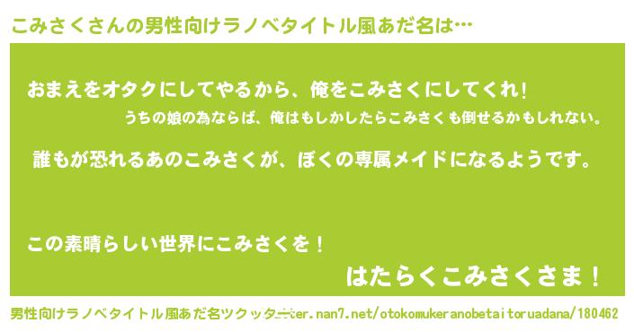 | 意味不明あだ名 | 『永久保存こみさく』 |