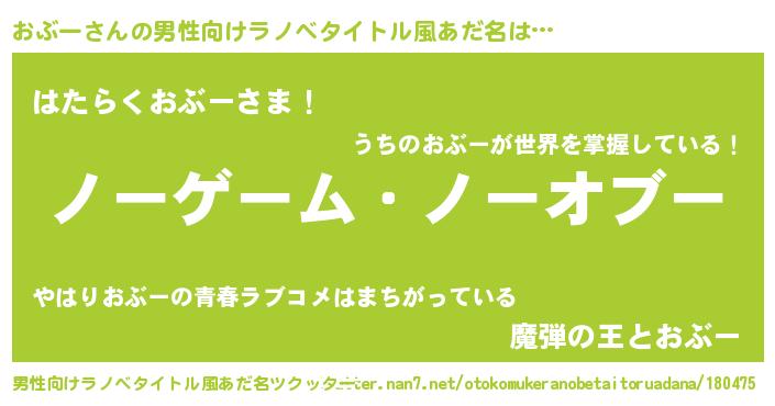 | 女子向けラノベタイトル風あだ名 | 『おぶー恋絵巻』『首の姫と首なしおぶー』 |