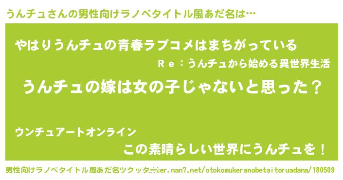 | 女子向けラノベタイトル風あだ名 | 『うんチュ様がみてる』 |