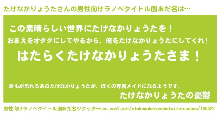 | 意味不明あだ名 | 『住所不定無職たけなかりょうた(74歳)』 |