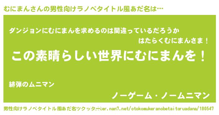 | 女子向けラノベタイトル風あだ名 | 『悪役むにまんに転生したようですが、知った事ではありません』 |