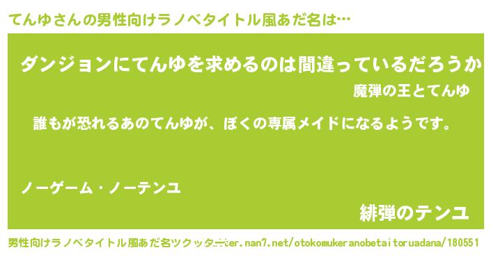 | 意味不明あだ名 | 『永久保存てんゆ』『自称てんゆ』 |