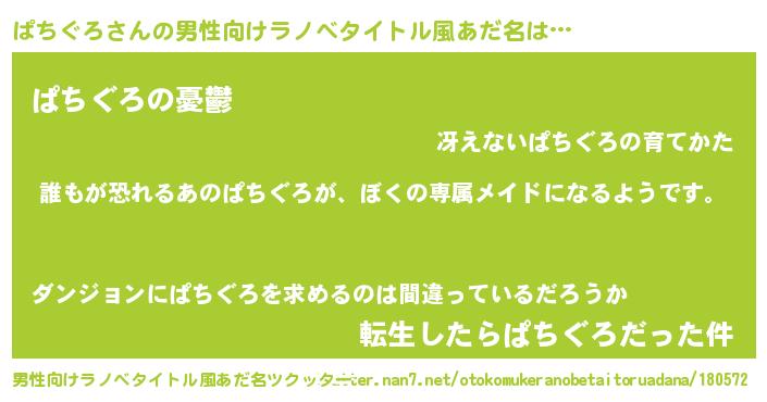 | 女子向けラノベタイトル風あだ名 | 『異世界でカフェぱちぐろを開店しました。』 |