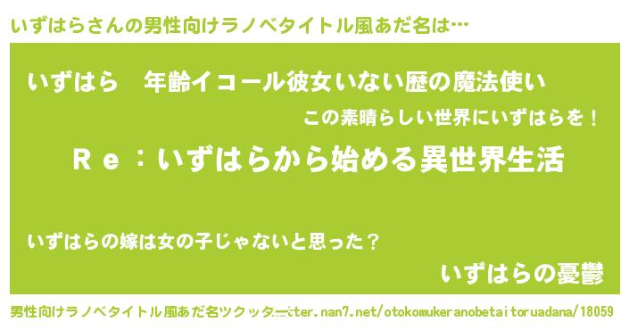 | 女子向けラノベタイトル風あだ名 | 『いずはらストレイドッグス』 |