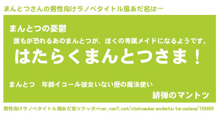 | 胡散臭い通販商品みたいなあだ名 | 『モテモテ間違いなし水晶球…その名も「まんとつ」』 |