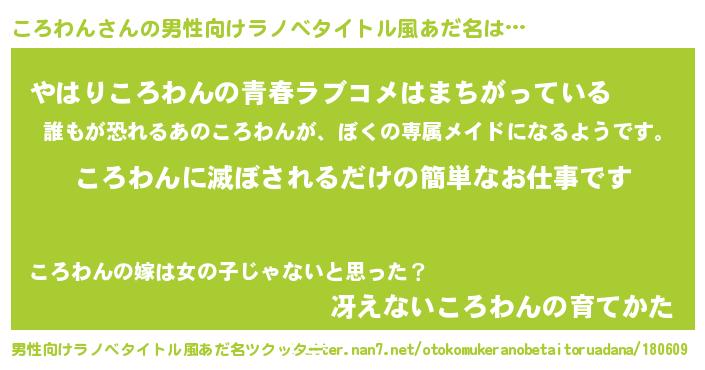 | ヒーロー風カッコイイあだ名 | 『ウルトラころわんマン』『ネオコロワン』 |