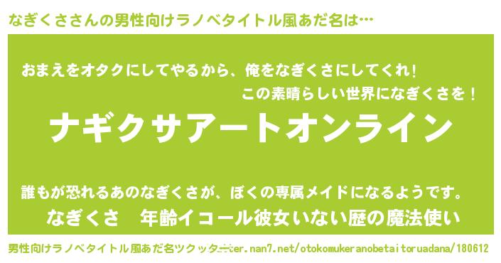 | 女子向けラノベタイトル風あだ名 | 『なぎくさ姫と円卓の騎士』 |