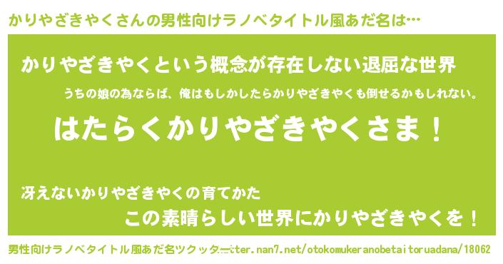 | 胡散臭い通販商品みたいなあだ名 | 『絶対に幸福をもたらす健康食品…その名も「かりやざきやく」』 |