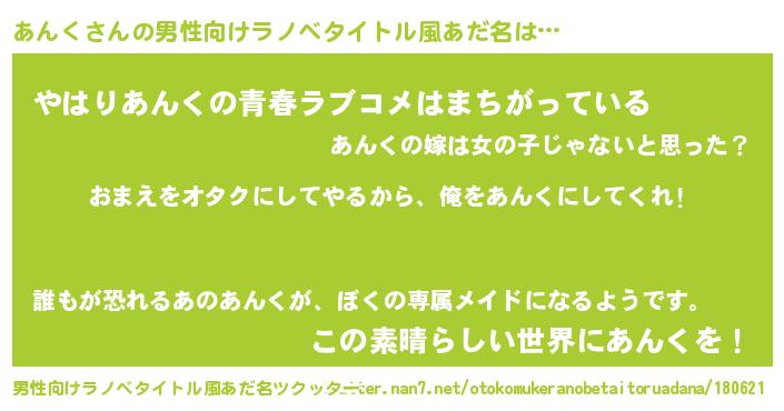 | 女子向けラノベタイトル風あだ名 | 『あんく恋絵巻』『あんくの雑貨屋さん』 |