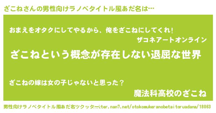 胡散臭い通販商品みたいなあだ名 | 『来世でも幸せになれる水素水…その名も「ざこね」』 |