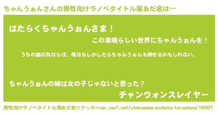 | ファンタジー風あだ名 | 『エターナルチャンウォンー』 |