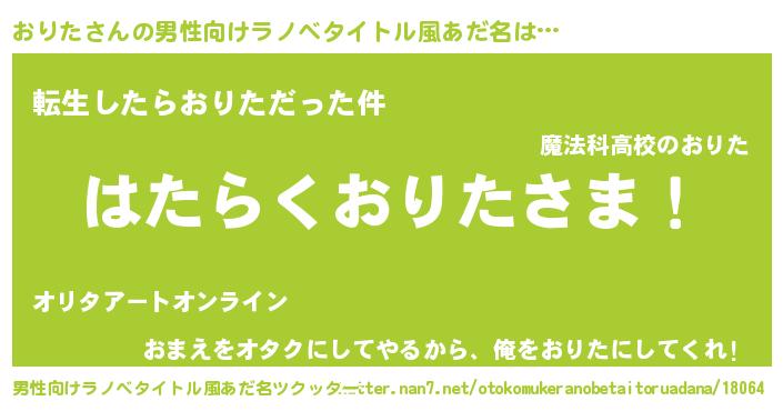 | 意味不明あだ名 | 『めかぶ科おりた属』『自称おりた』 |