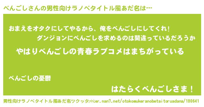| 女子向けラノベタイトル風あだ名 | 『べんごしの雑貨屋さん』 |