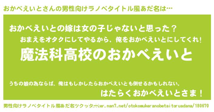 | 女子向けラノベタイトル風あだ名 | 『おかべえいとアンティーク』 |