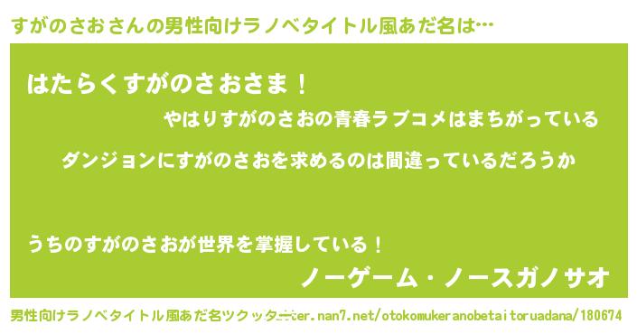 | 意味不明あだ名 | 『とにかく怪しいすがのさお』 |