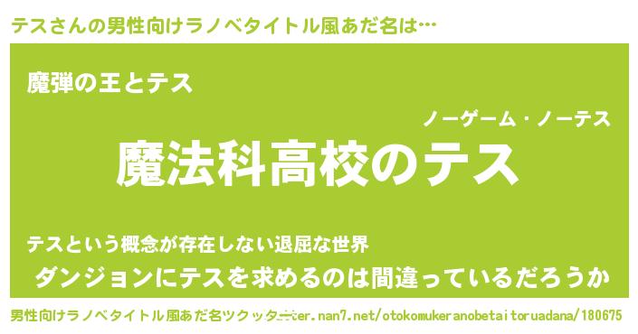 | 女子向けラノベタイトル風あだ名 | 『テスなんてお断りですっ。』 |