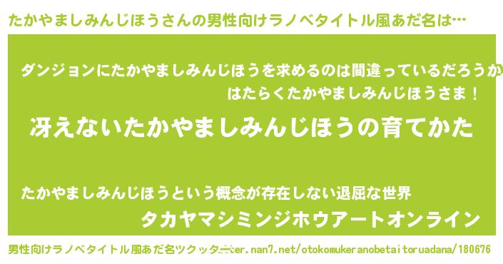 | 萌えアニメ | 主人公(たかやましみんじほう)のあだ名『 たか様』 |