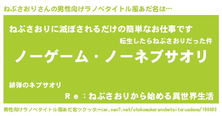 | ヒーロー風カッコイイあだ名 | 『慈愛の使者ねぶさおり』『天弓騎士ネブ』 |