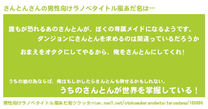 | ヒーロー風カッコイイあだ名 | 『正義の使者さんとん』『ネオサントン』 |