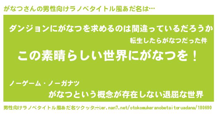 | 欧米人風あだ名 | 『ダレノガレがなつ』『ウサインがなつ』 |