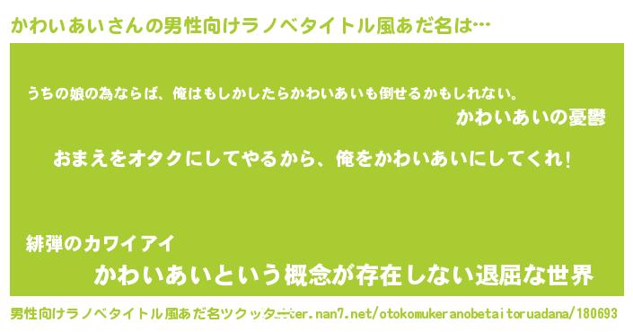 | ヒーロー風カッコイイあだ名 | 『正義の使者かわいあい』『幻影騎士カワ』 |