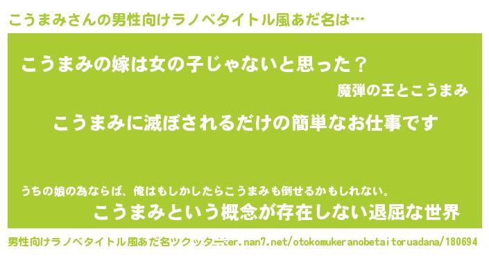 | ヒーロー風カッコイイあだ名 | 『銀牙騎士コウ』『ネオコウマミ』 |