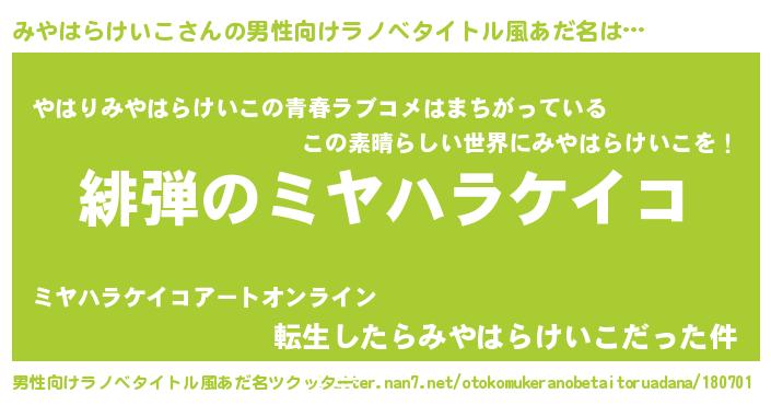 | 意味不明あだ名 | 『みやはらけいこフォーエバー』 |