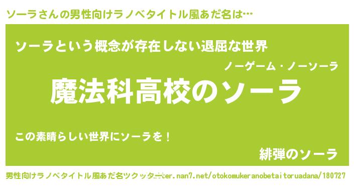 | 意味不明あだ名 | 『自称ソーラ』『永久保存ソーラ』 |