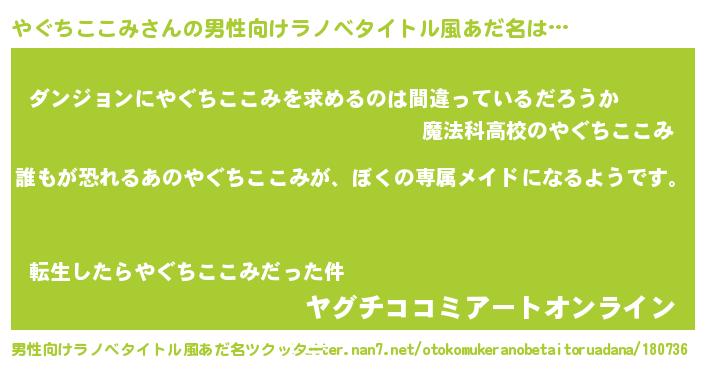 | 胡散臭い通販商品みたいなあだ名 | 『来世でも幸せになれる健康食品…その名も「やぐちここみ」』 |