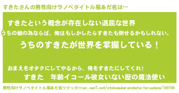 | 胡散臭い通販商品みたいなあだ名 | 『前代未聞の健康食品…その名も「すきた」』 |