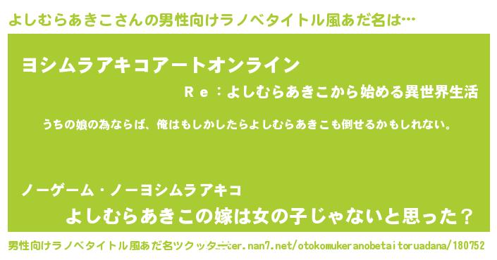 | 女子向けラノベタイトル風あだ名 | 『よしむらあきこの婚約者』 |