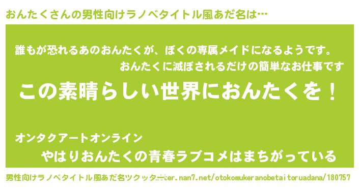 おんたくさんの男性向けラノベタイトル風あだ名をツクッター!