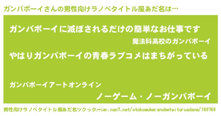 | ファンタジー風あだ名 | 『エターナルガンバボーイー』 |