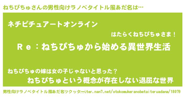 | ヘコむあだ名 | 『ねちっふぃ~』『ねちぴちゅ(震え声)』 |