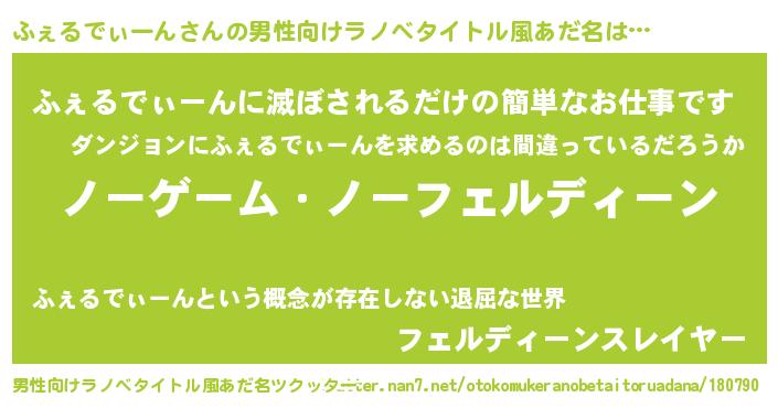 | 伝説のあだ名 | 『救世主となる占い師ふぇるでぃーん』 |