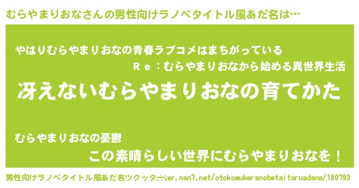 | 伝説のあだ名 | 『最古の陰陽師むらやまりおな』 |