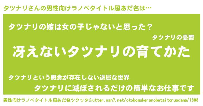 | 意味不明あだ名 | 『とにかく怪しいタツナリ』 |