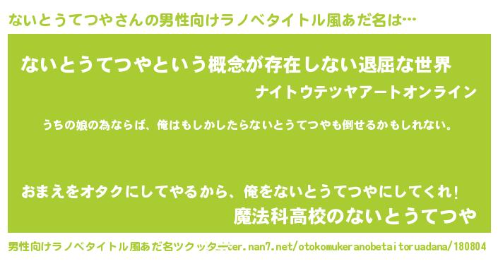 | 女子向けラノベタイトル風あだ名 | 『ないとうてつやの婚約者』 |