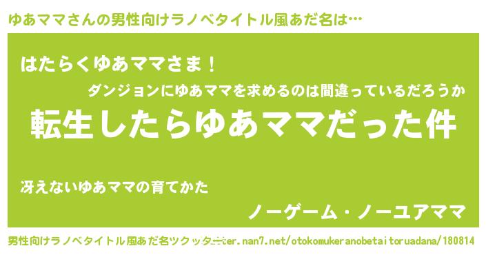 | 意味不明あだ名 | 『なめこ科ゆあママ属』『自称ゆあママ』 |