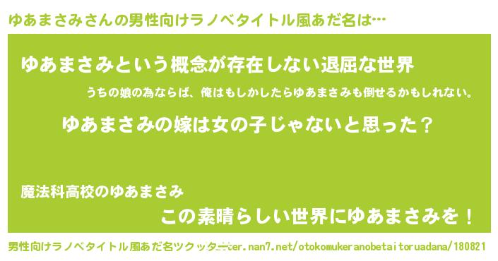 | 女子向けラノベタイトル風あだ名 | 『ゆあまさみの卵を拾いまして』 |