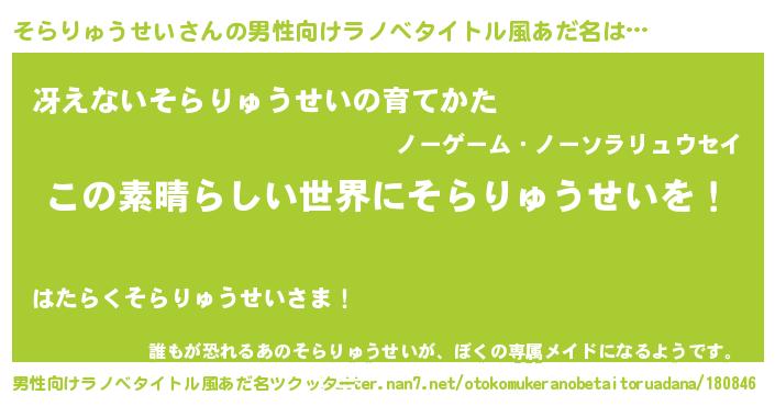 | 女子向けラノベタイトル風あだ名 | 『乙女ゲームの破滅フラグしかない悪役そらりゅうせいに転生してしまった…』 |