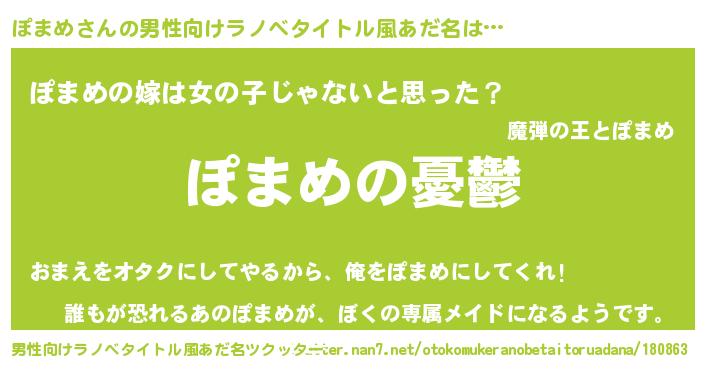 | 女子向けラノベタイトル風あだ名 | 『(仮)ぽまめのやんごとなき事情』 |