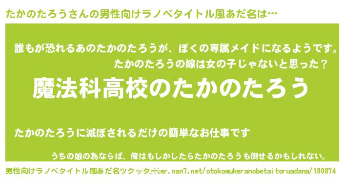 | 女子向けラノベタイトル風あだ名 | 『たかのたろうなんてお断りですっ。』 |