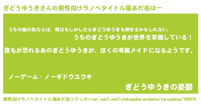 | 女子向けラノベタイトル風あだ名 | 『異世界でカフェぎどうゆうきを開店しました。』 |