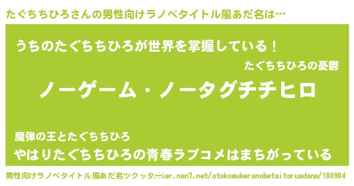 | 女子向けラノベタイトル風あだ名 | 『死神たぐちちひろの再婚』 |