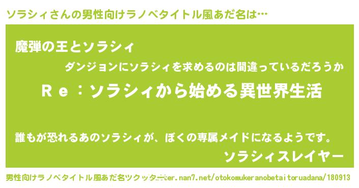 | 胡散臭い通販商品みたいなあだ名 | 『テレビで話題の高麗人参…その名も「ソラシィ」』 |